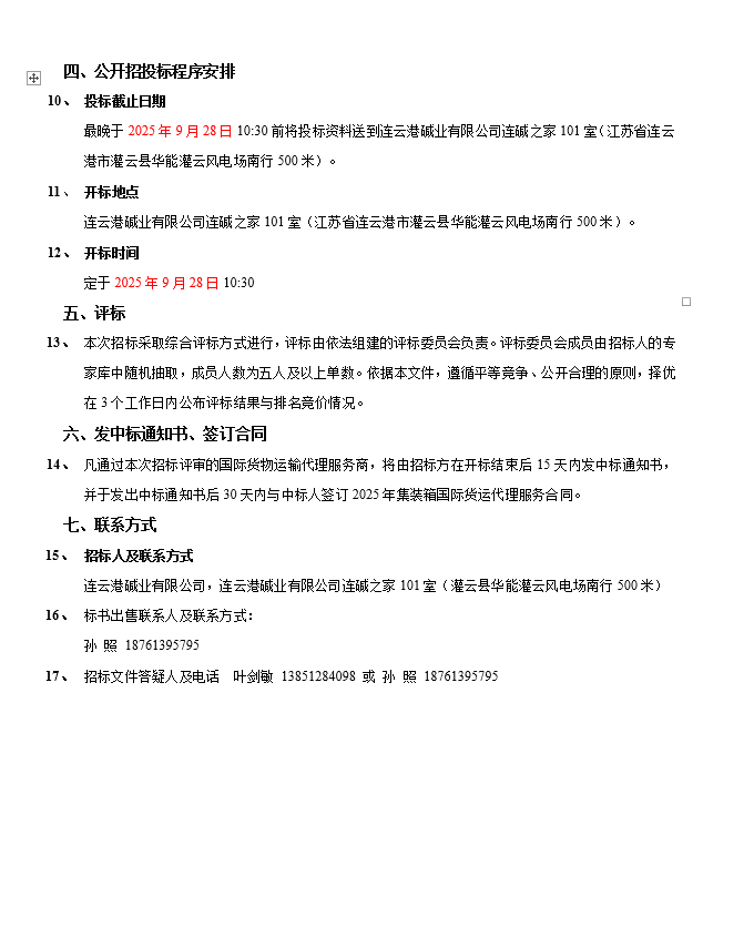 连云港碱业有限公司集装箱国际货运代理服务商项目招标公告
