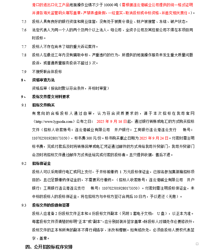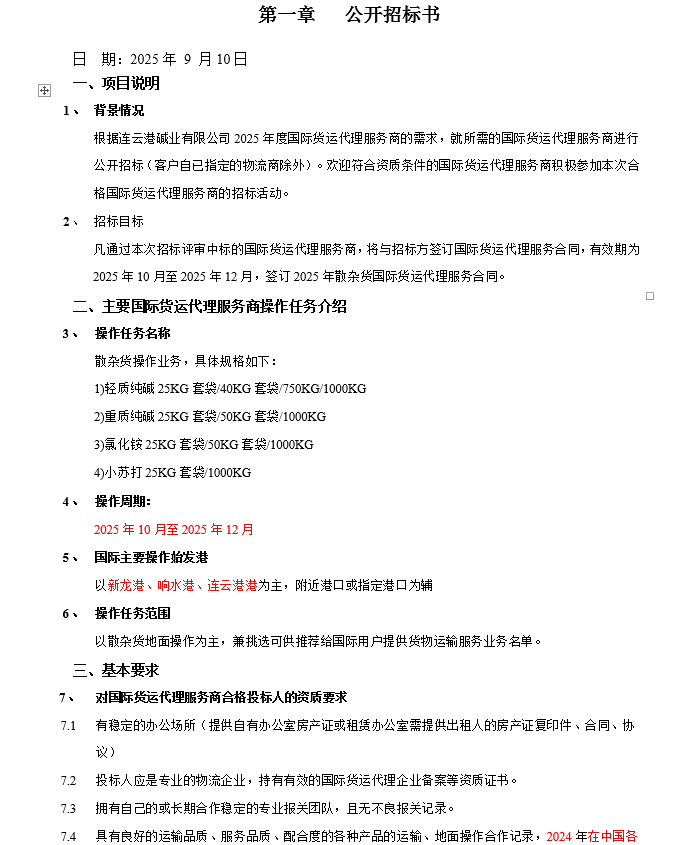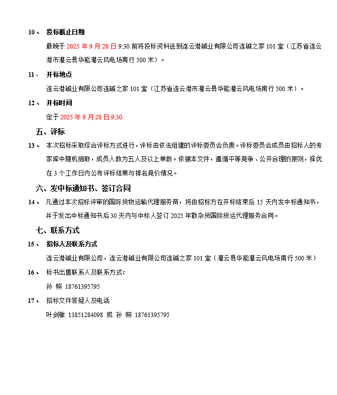 连云港碱业有限公司散杂货国际货运代理服务商项目招标公告