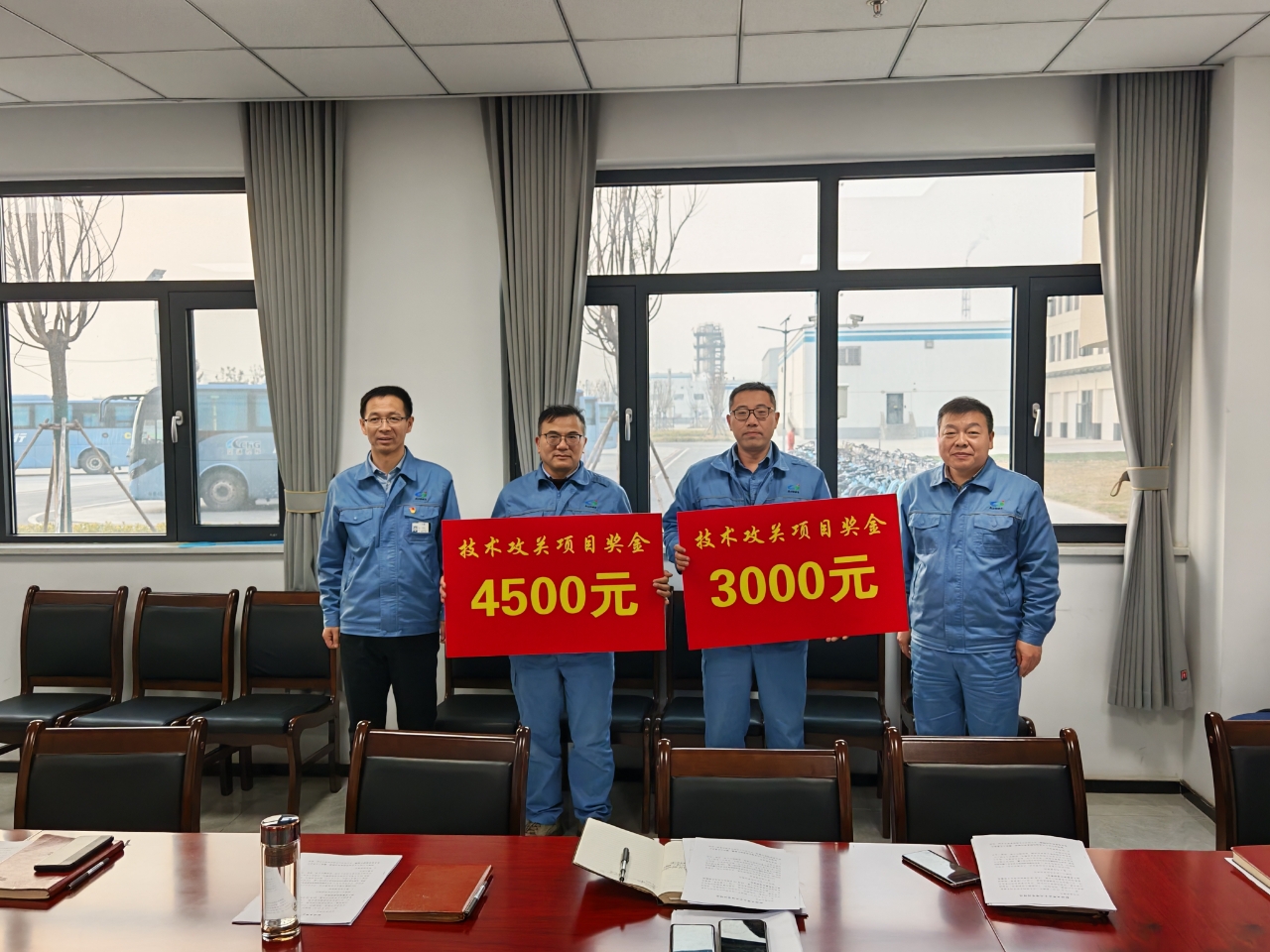 为表彰先进、树立榜样,进一步激发全体员工创新创效的积极性与主动性,12月19日下午,公司对在自主攻关优化项目中取得突出成绩的孔祥昶项目团队和李征徐项目团队进行表彰。公司党委书记、董事长姜自成,公司总经理、党委副书记、副董事长延立强为其颁发了技术攻关项目奖金。