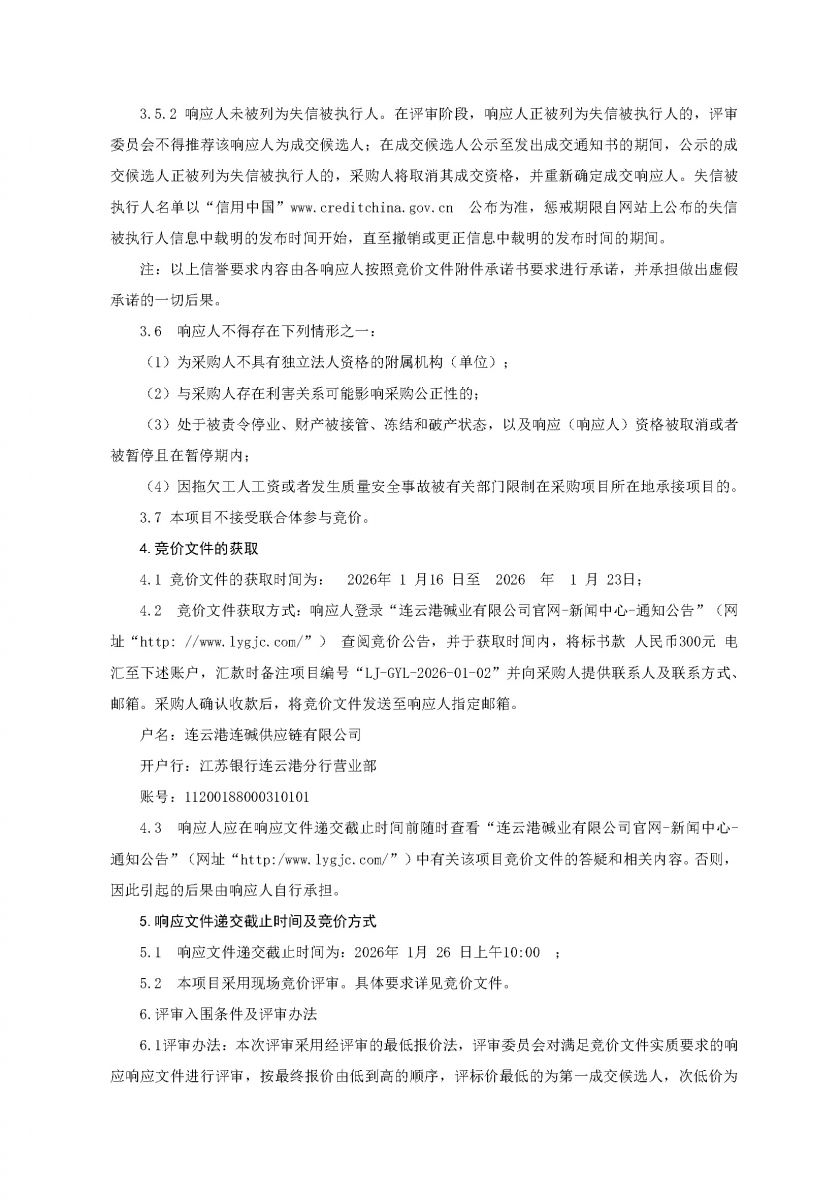 连云港连碱供应链有限公司煤炭汽车短驳运输项目公开竞价公告