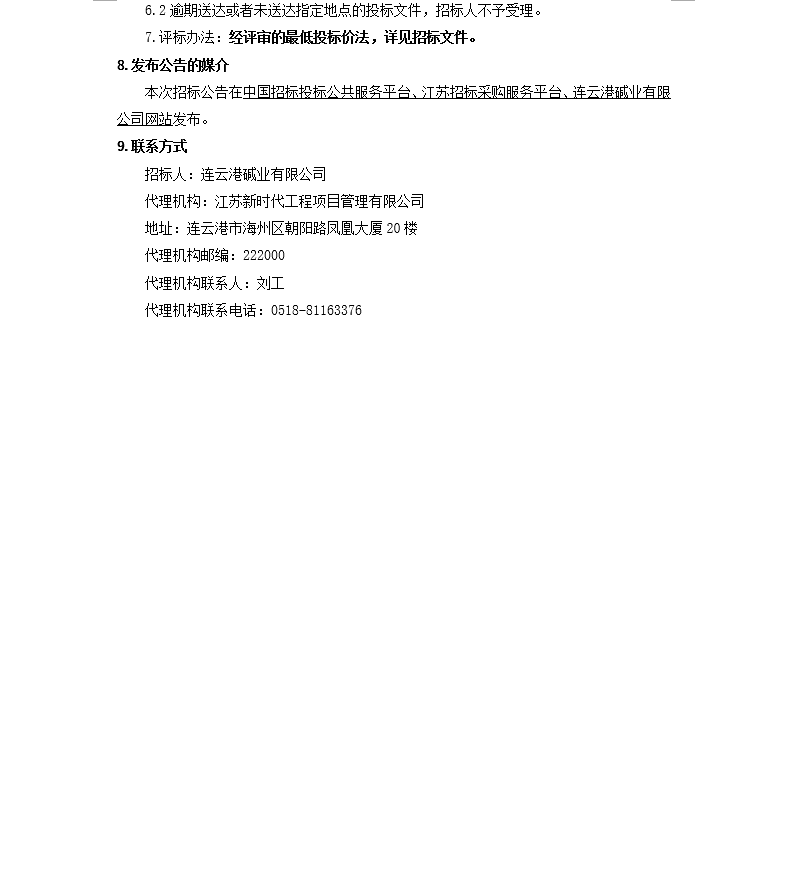 连云港碱业有限公司煤气化渣固废处置二次招标公告