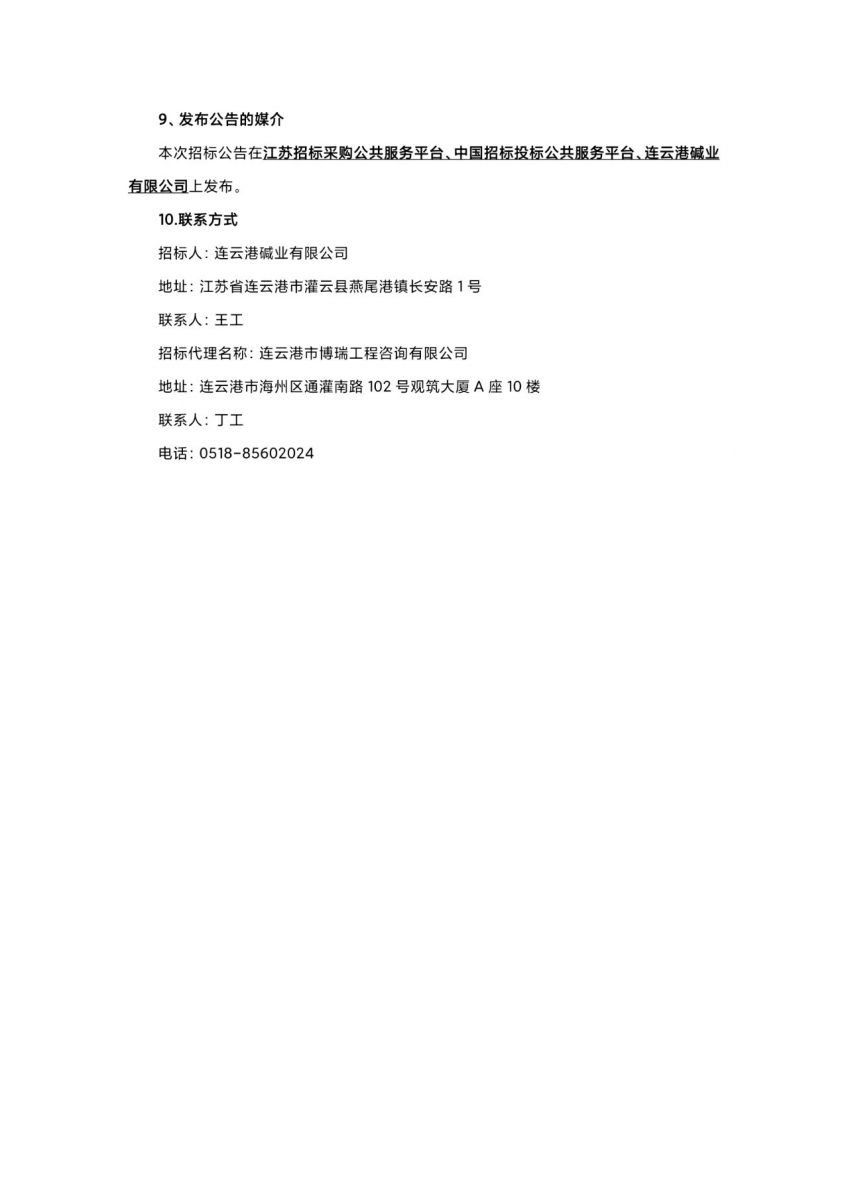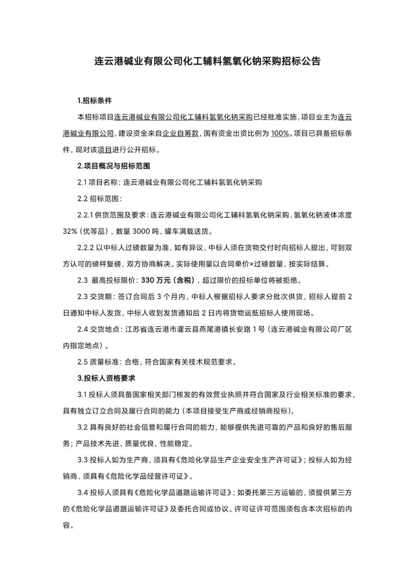 连云港碱业有限公司化工辅料氢氧化钠采购招标公告